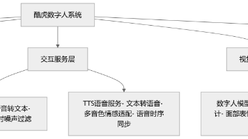 酷虎数字人系统是一套集成语音处理、AI计算、数字人驱动及流媒体输出的全链路智能系统,核心依托本地知识库、RAG向量知识库、AI大模型、语音服务(ASR/TTs)、数字人模型五大核心模块,通过协同工作将输入信息转化为可实时分发的直播流,最终输出RTMP、FLV、RTC三种主流流媒体格式,适配不同直播、互动场景需求。驱动模块接收AI大模型的指令(文本、语音信号),通过动作捕捉、面部表情驱动算法,实现数