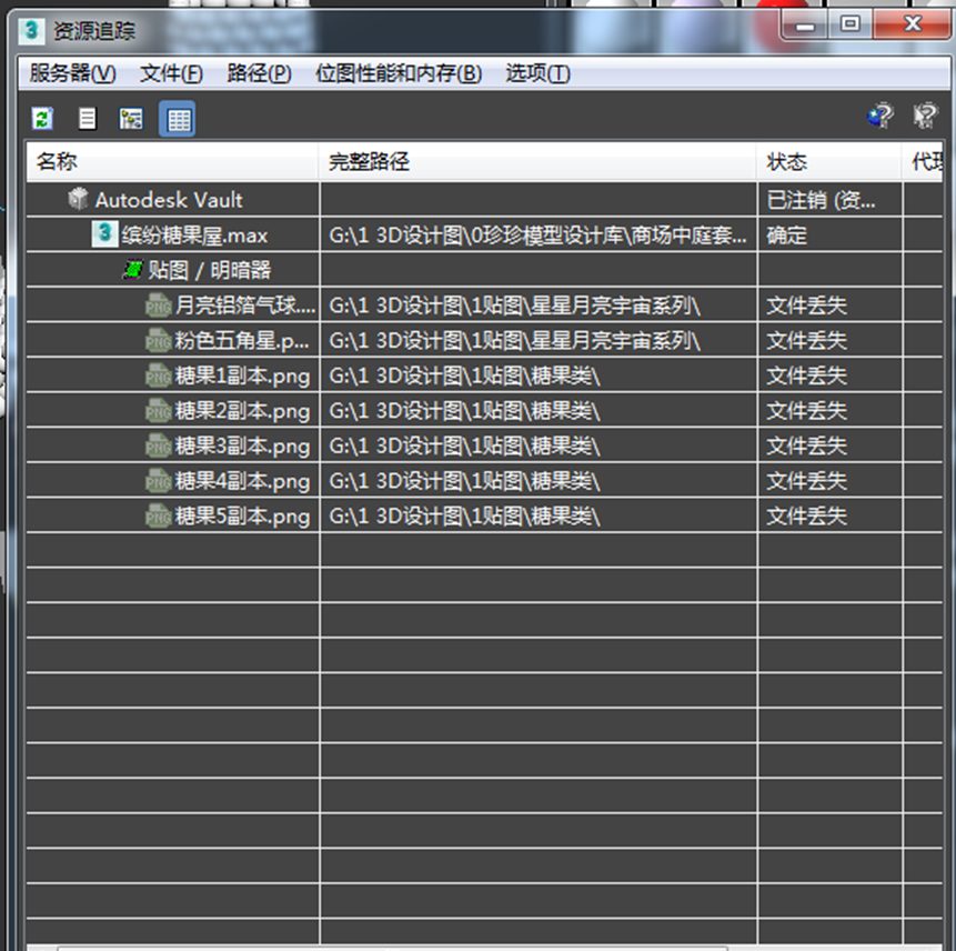 该窗口会清晰列出场景中所有贴图的状态,包括已正常找到和丢失的贴图,丢失的贴图通常会以红色字体或特殊标记显示。