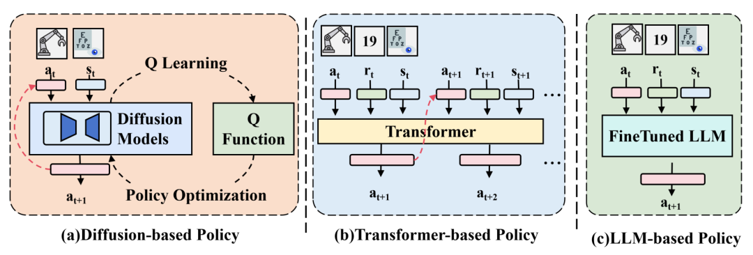 - 使用基于 Transformer 的架构:利用 Transformer 的自注意力机制捕捉轨迹中的长期依赖性,提高策略的灵活性和准确性。例如,决策 Transformer 将强化学习重新表述为条件序列建模问题,通过监督学习从离线数据集中生成最优动作。