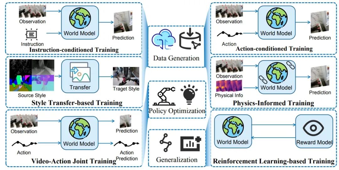 世界模型用途也可以总结为三类:数据生成,策略优化和泛化。