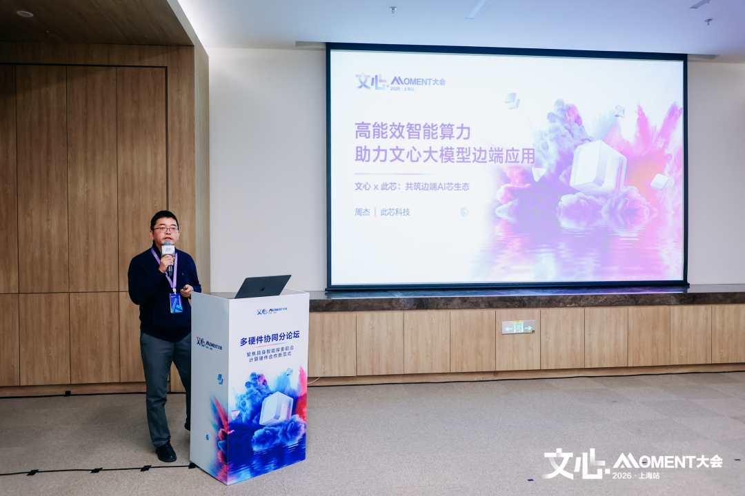 此芯科技首席生态官周杰先生发表了题为《高能效智能算力,助力文心大模型边端应用》的主题演讲。他深入探讨了如何通过低功耗智能算力推动边端AI的发展,并强调边端计算的能效优化是具身智能落地的关键所在。此外,他也展望了2026年文心大模型与此芯科技在具身智能领域的合作前景,致力于共同探索高能效算力在边缘侧的最佳实践。