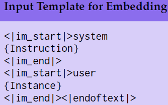 - 输入遵循 Qwen3-VL 上下文结构,指令作为系统消息传入,默认指令为 “Represent the user‘s input”。
