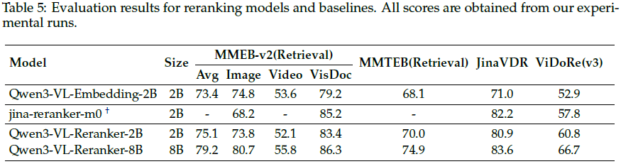 | Qwen3-VL-Reranker | 2B/8B | 28/36 | 32K | - | - | - | 是 |