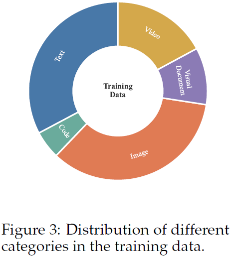 为了赋予模型跨越不同模态、任务与领域的通用表征能力,构建了一个大规模数据集。图 3 展示了该数据集中各类别的分布情况。
