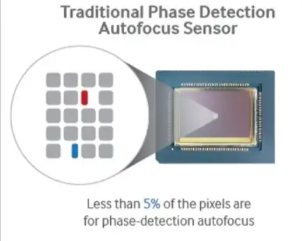 这种特殊的像素以一定密度均匀地分布在像素矩阵中,为AF软件提供聚焦参考。而AF的工作原理与下节将要介绍的DP原理类似。