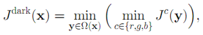 令J(x)代表一幅RGB彩色图像,则暗通道图像的数学定义是